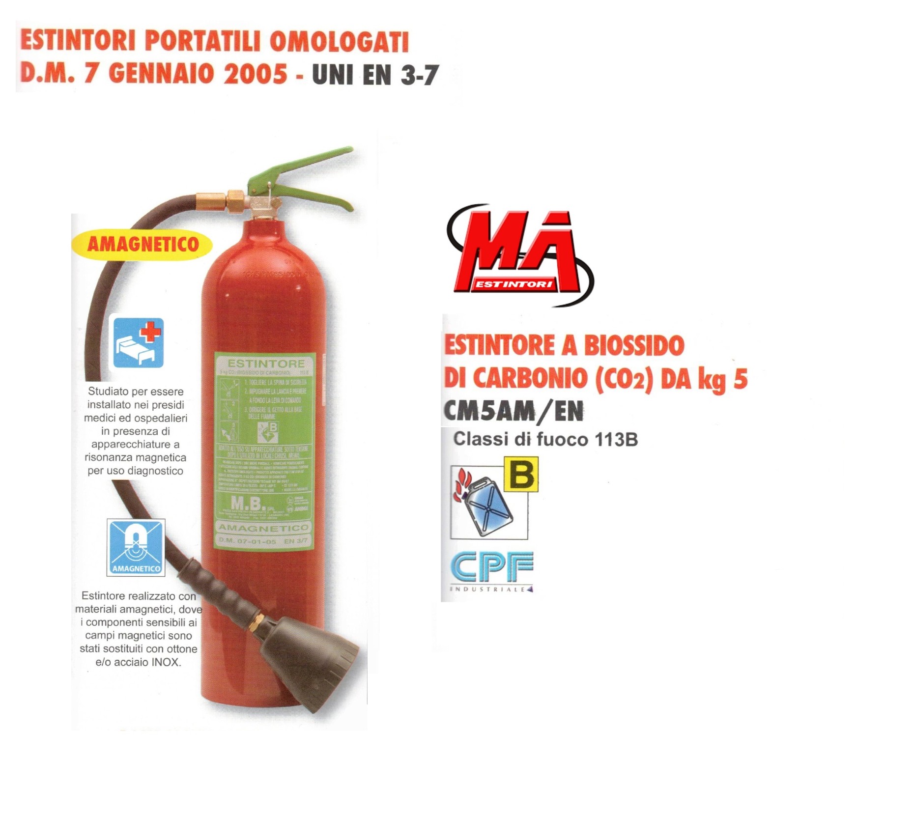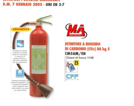 Estintore portatile omologato, a biossido di carbonio (CO2) da 5 Kg