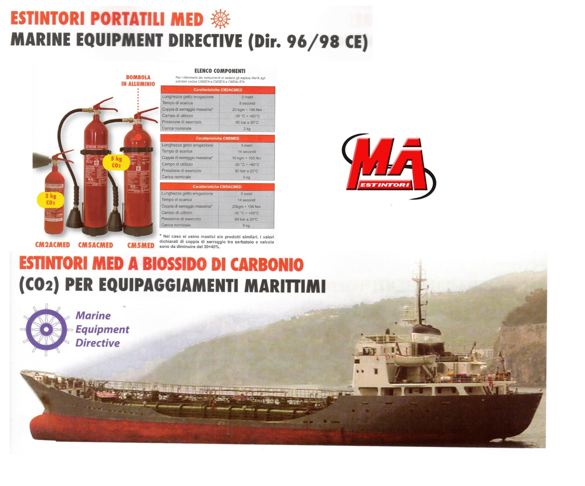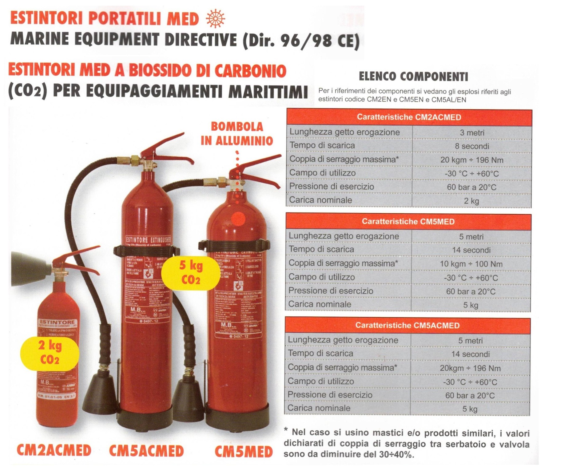 Estintore MED a biossido di carbonio per equipaggiamenti marittimi