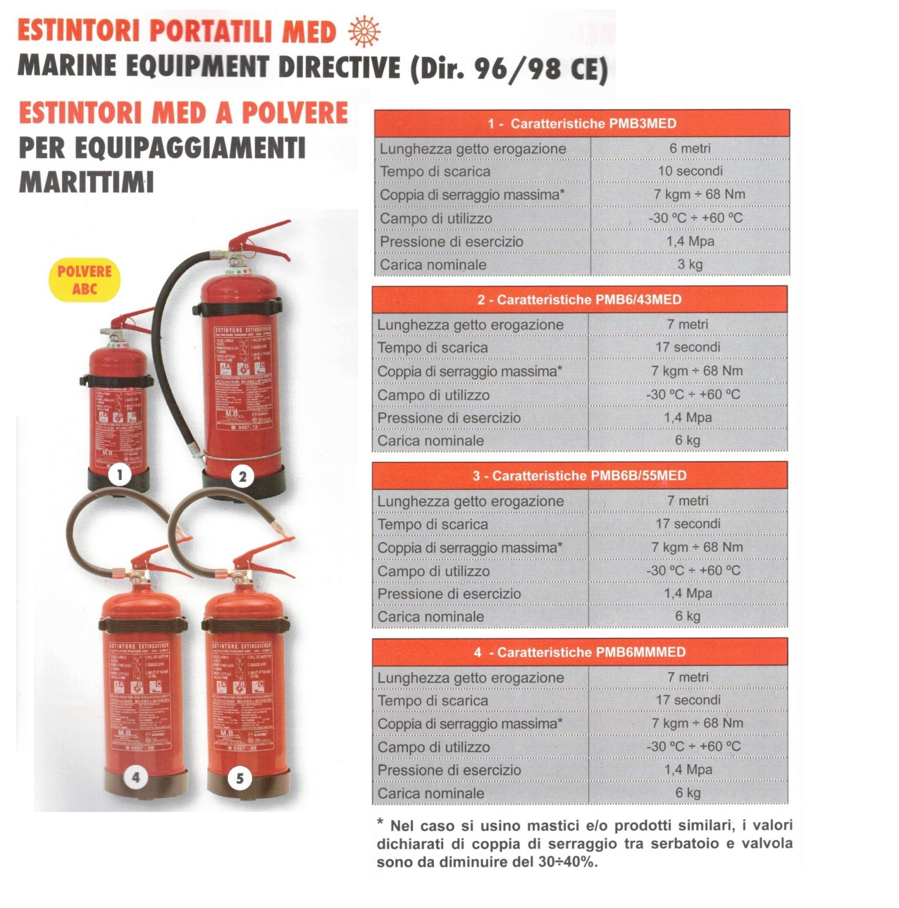Estintore MED a polvere per equipaggiamenti marittimi