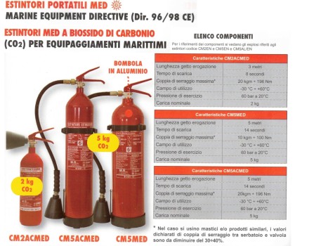 Estintori per imbarcazioni abilitate a navigare senza limiti dalla costa e per navi da diporto.